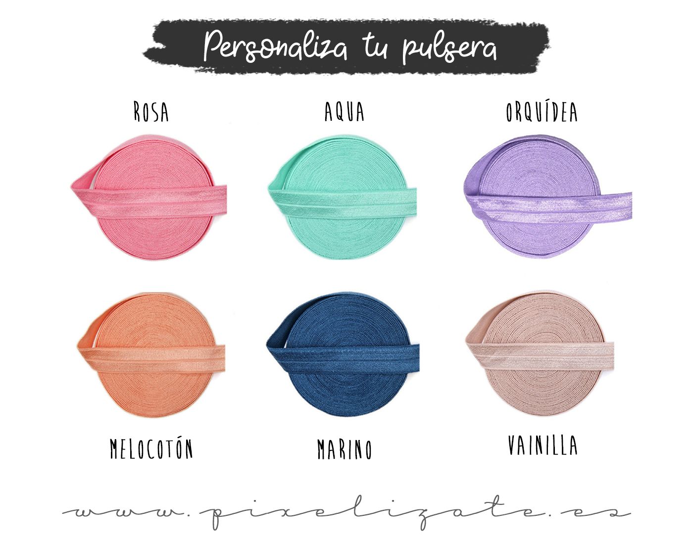 ¡Personaliza tu pulsera! Elige tu color favorito entre nuestra gama de colores (el color de la pulsera de la foto es Orquídea)